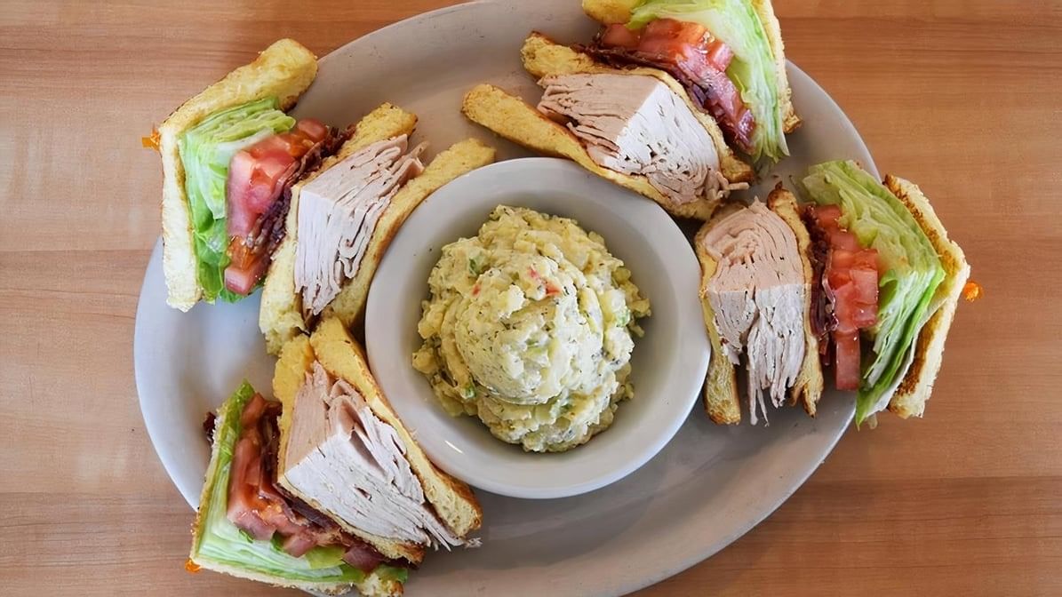 Turkey, turkey pastrami, roast beef, ham, salami, tuna salad, chicken salad or egg salad on egg bread